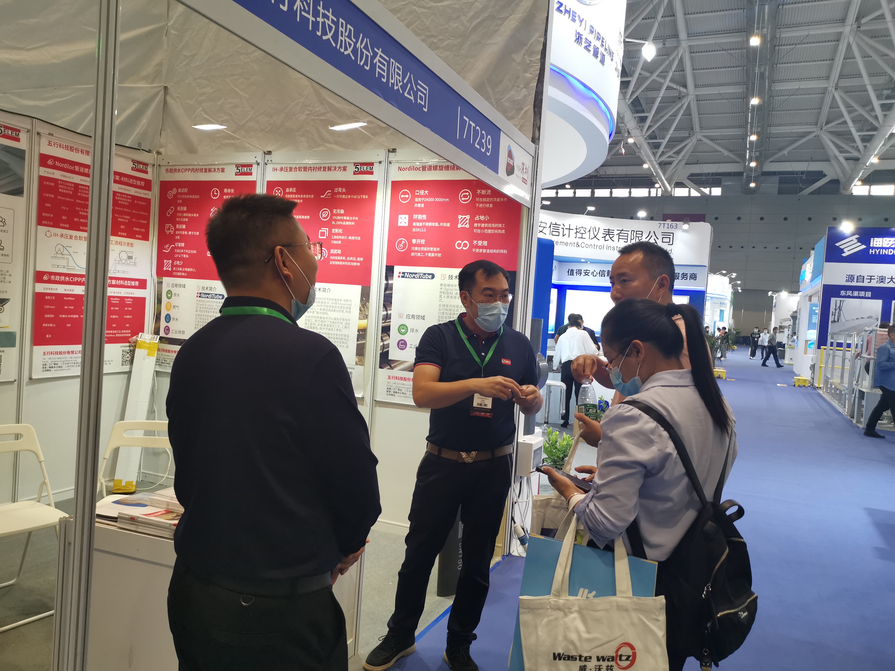 展會以“留住青山綠水,探索產業藍海”為主題,旨在推動生態環境科技創新交流和產業發展,促進生態環境對外交流與合作,更好地服務污染防治攻堅戰和高質量發展。因此,五行科技攜帶“Nordiloc管道螺旋纏繞解決方案”、“市政供水CIPP內襯更新解決方案”、 “IH-承壓復合軟管內襯更新解決方案”三類非開挖更新的專業技術與產品在展會期間進行了現場展示,助力建設優美、清潔的城市環境,和諧、宜居的人居環境。