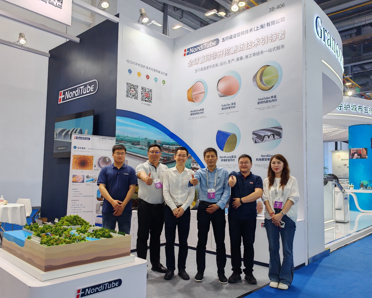 四月芳華盛,春深日暖時,五行諾道聚,展會綻新姿。在中國城鎮供水排水協會2025年會(杭州)和第26屆中國環博會(上海)兩大行業盛會上,五行諾道作為水務與環保領域的重要參與者,五行諾道以“城市地下生命線守護者”為主題,攜三大核心非開挖更新技術——螺旋纏繞內襯技術、穿插軟管內襯技術、翻轉熱固化內襯技術——構筑完整的地下管網更新解決方案體系,展現其在城市更新與低碳運維領域的硬核實力。五行諾道準備充分,技術、產品、人員鋪設到位,與現場眾多科研設計人員、行業同仁進行深刻研討并進行答疑解惑,將現有非開挖修復技術的特質優勢、研究應用展開介紹分析,吸引眾多行業精英駐足探討,廣受贊譽。
