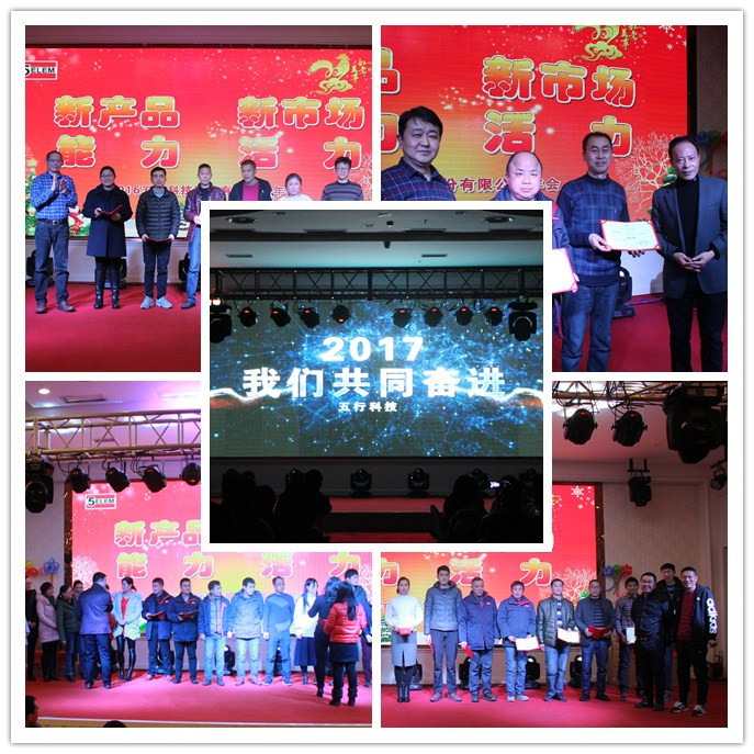 2016年12月23日晚6點50分,五行科技股份有限公司在世紀(jì)緣大酒店世紀(jì)緣廳如期舉行。本次年會由總公司辦公室主辦,主題是:新產(chǎn)品,新市場,活力、能力。生產(chǎn)班組長以上人員、先進(jìn)員工以及上海、昆山辦事處的領(lǐng)導(dǎo)同仁們出席了此次年會。