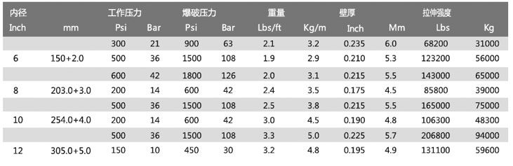 建議使用的最大工作壓力:上述爆破壓力值的50%(短暫使用)。為了保證軟管的最長使用壽命,建議工作壓力或拉伸力不要超過上述參數值的1/3。